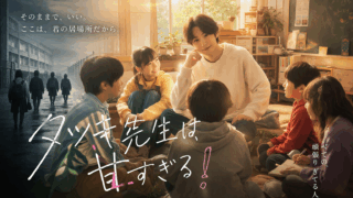 メタディスクリプションフリースクールを舞台にした話題のドラマ『タツキ先生は甘すぎる!』を徹底解説。あらすじ・見どころ・登場人物・人物相関図から、福山雅治「拍手喝采」との親和性まで深掘り考察します。