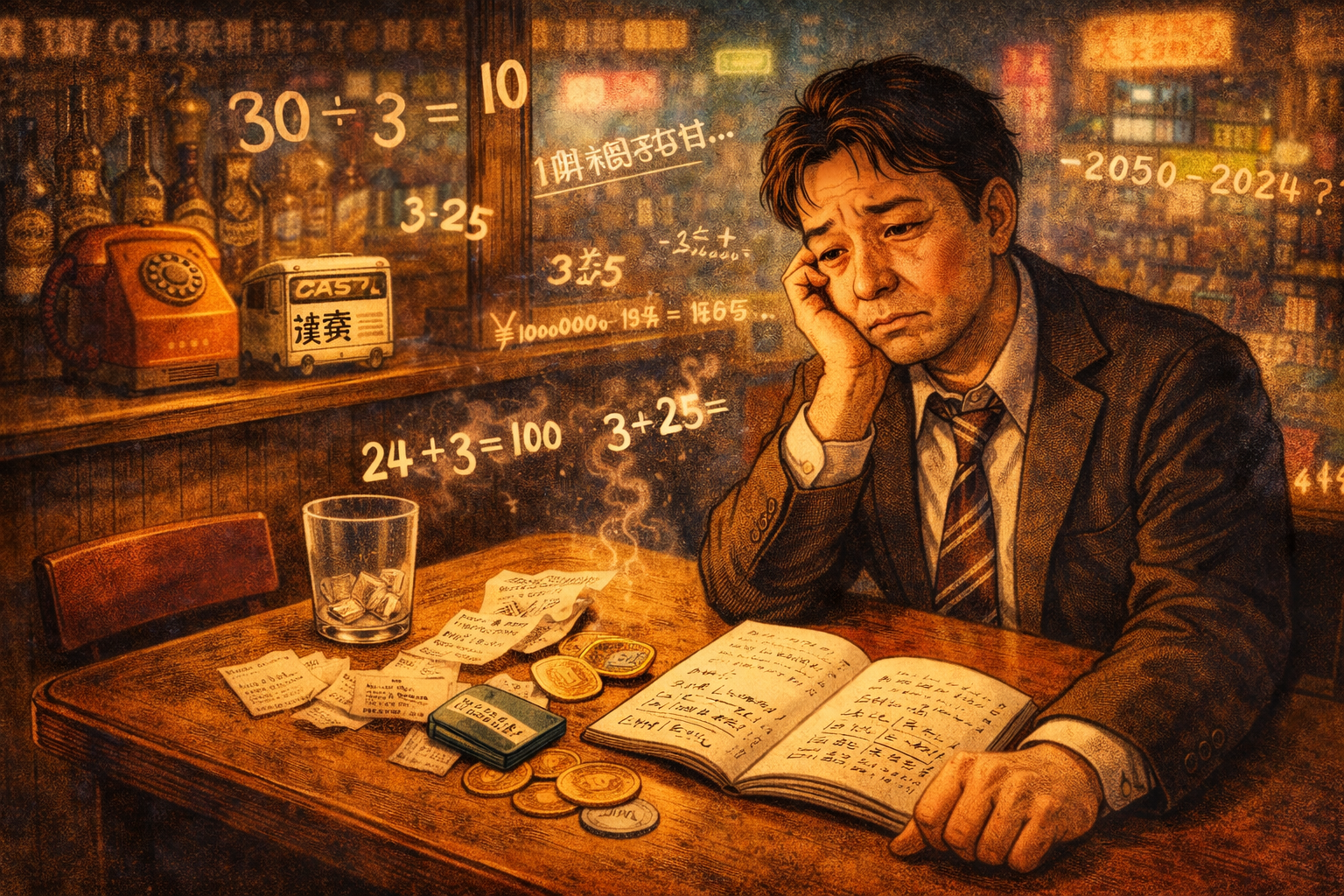 たとえば、割り勘でなんとなく損をした夜。毎日の通勤に削られていく時間。コツコツ貯めたポイントの時給換算。住宅ローンや退職金の残酷な現実。そういう、できれば数えたくないものを、あえて文章題にしている。