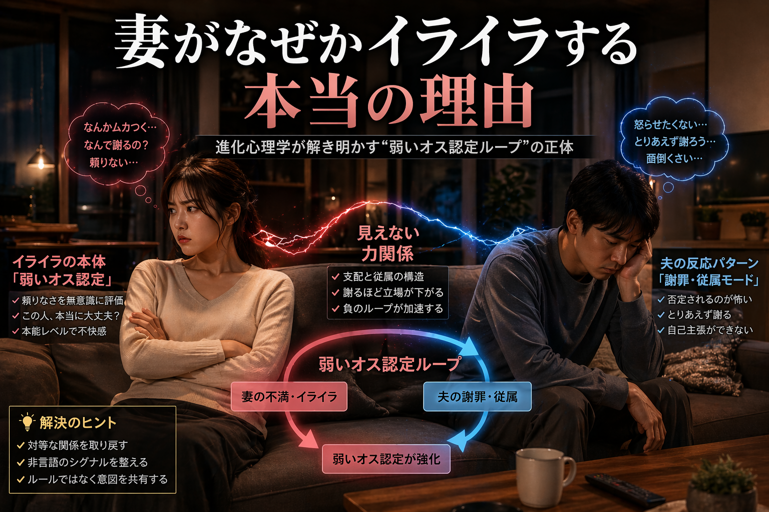 「なぜ妻は夫にイライラし続けるのか?」──“弱いオス認定ループ”を進化心理学で読み解く